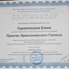 3) Эриксоновский гипноз, 2013, Институт НЛП, курс под руководством Михаила Пелехатого + курс под руководством Юрия Чекчурина с общей итоговой сертиикацией.